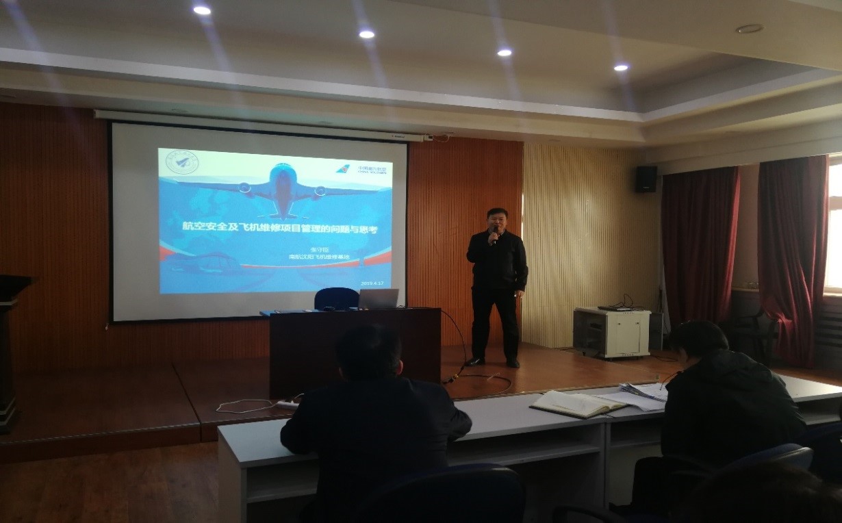 在报告中,张守臣副经理首先用短视频展示了航空事故带来的危害,介绍了航空安全管理的历史发展过程,用航空安全管理的理论印证了航空安全管理的重要性;其次张经理简单介绍了沈阳维修基地航线维修基本情况,飞机定检维修的生产线项目管理模式,就思想意识、行为作风、道德素养对“准航空人”提出了建议,最后张经理根据工作实践,提出了“人岗相适与潜力激发”、“90后、00后新生代员工自我激励问题”、“企业绩效管理与传统文化观念冲突”等企业面临解决的管理实践问题。